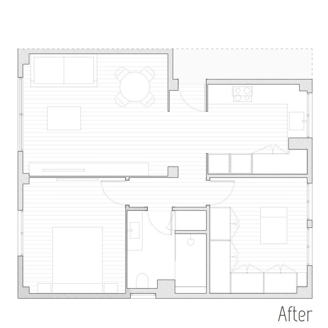 Therefore, we planned the extension of the bedroom and bathroom and designed a generously sized dressing room in the room next to the aforementioned. In addition, we are committed to a meticulous selection of finishes and, above all, an improvement in thermal and acoustic comfort to reduce energy consumption.